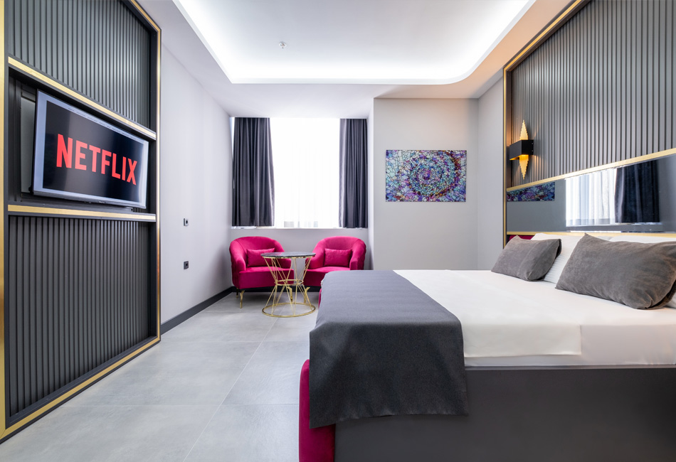 216 Prestige Hotel, İstanbul’un merkezi bölgelerinden birinde konforlu ve lüks bir konaklama deneyimi sunmak için tasarlanmış şık bir tesistir. Misafirlerimize eşsiz bir konfor, modern olanaklar ve yüksek kaliteli hizmet anlayışı sunarak, iş ve tatil amaçlı seyahatler için mükemmel bir tercih oluşturmaktadır. Tesisimiz, zarif ve modern tasarımıyla her yaştan misafire hitap etmektedir. 216 Prestige Hotel, geniş ve ferah odalarıyla konuklarının her türlü ihtiyacını karşılayacak şekilde donatılmıştır. Her odada, yüksek kaliteli mobilyalar, rahat yataklar ve modern banyo olanakları mevcuttur. Konumu itibariyle İstanbul’un en dinamik bölgelerine yakın olan 216 Prestige Hotel, alışveriş merkezleri, restoranlar ve eğlence alanları gibi önemli noktalara kolay erişim imkânı sunmaktadır. Ulaşım açısından oldukça merkezi bir konumda yer alan tesisimiz, toplu taşıma ve ana yollar sayesinde şehrin her yerine rahatça ulaşılabilmektedir.